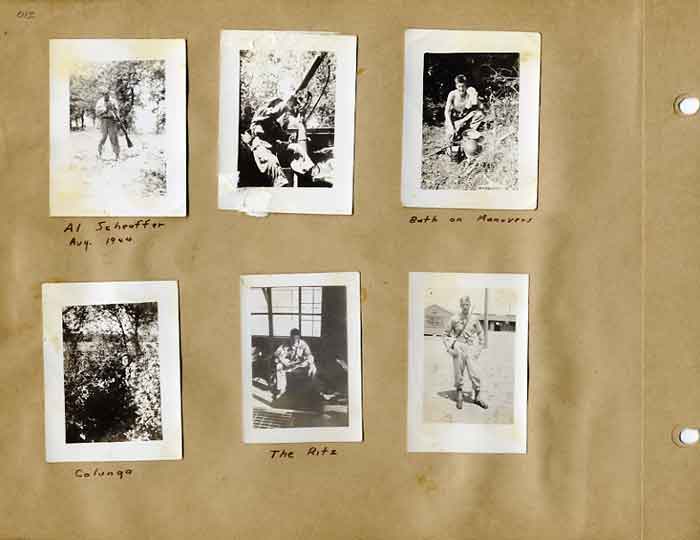 The photographic record of his time in the service is sporadic. There are large gaps in the record, depending on whether or not a camera and or film was available, or allowed. The first part of the album show his pre-war days playing high school baseball, and then there are a number of photos of Army training in Texas. He took no pictures when he was in Europe during combat, but fortunately salvaged a single roll of film (one of many rolls that were unfortunately never recovered) from a half track driver, Donald Conkling, which my father processed after the war. This series of photographs show the platoon in France, just prior to its tragic first action in January 1945. According to my father, the use of a camera during combat and in Europe was prohibited by the Army, but some soldiers, such as Donald Conkling, somehow were able to get around the restriction, for which we are now thankful.