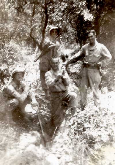 This photograph shows a rifle squad at latrine duty. Al Schaefer is standing in the ditch and was my best friend during the war. He was killed at Herrlishiem.
