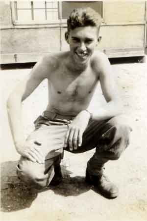 This is Raymond "Pappy" Cromer, from North Carolina, who was frightened of snakes in Texas. One night, while sleeping, a bramble pricked him and he came crashing through woods telling me to cut off his ear, he'd been bit by a snake. He would have thanked me if I had done it, but we went back to where we sleeping and found the bramble. He was sort of a timid, worried guy but a good fellow and got wounded seriously with everyone else on the first day of action at Herrlishiem. Both "Pappy" and I were young looking, and I was always conscious of this when we were around tough soldiers who'd just returned from North Africa.
