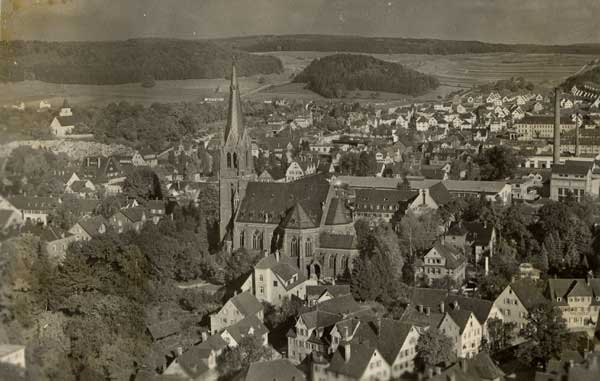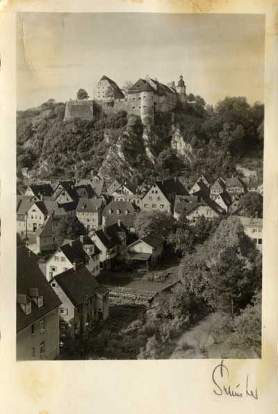 This is an example of a few of the postcards and photographs in the album of Heidenheim, Germany, as it appeared in 1945. This postcard has the photographer's signature. The "rollover" photograph is an image of the same town taken off the internet.